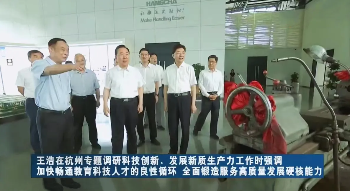 7月9日上午,浙江省委副书记、省长王浩赴杭叉集团股份有限公司(以下简称“杭叉集团”)调研企业科技创新、发展新质生产力工作。杭叉集团党委书记、董事长兼总经理赵礼敏热情接待王浩省长一行,并就企业大力实施新能源战略,坚持创新驱动战略,不断加大研发投入,持续提升核心竞争力,积极培育具有高科技、高效能、高质量特征的新质生产力工作开展情况进行了介绍。
