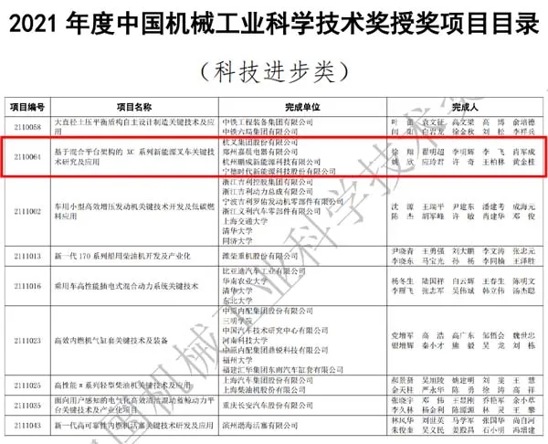 喜讯:杭叉集团荣获2021年度中国机械工业科学技术奖二等奖
