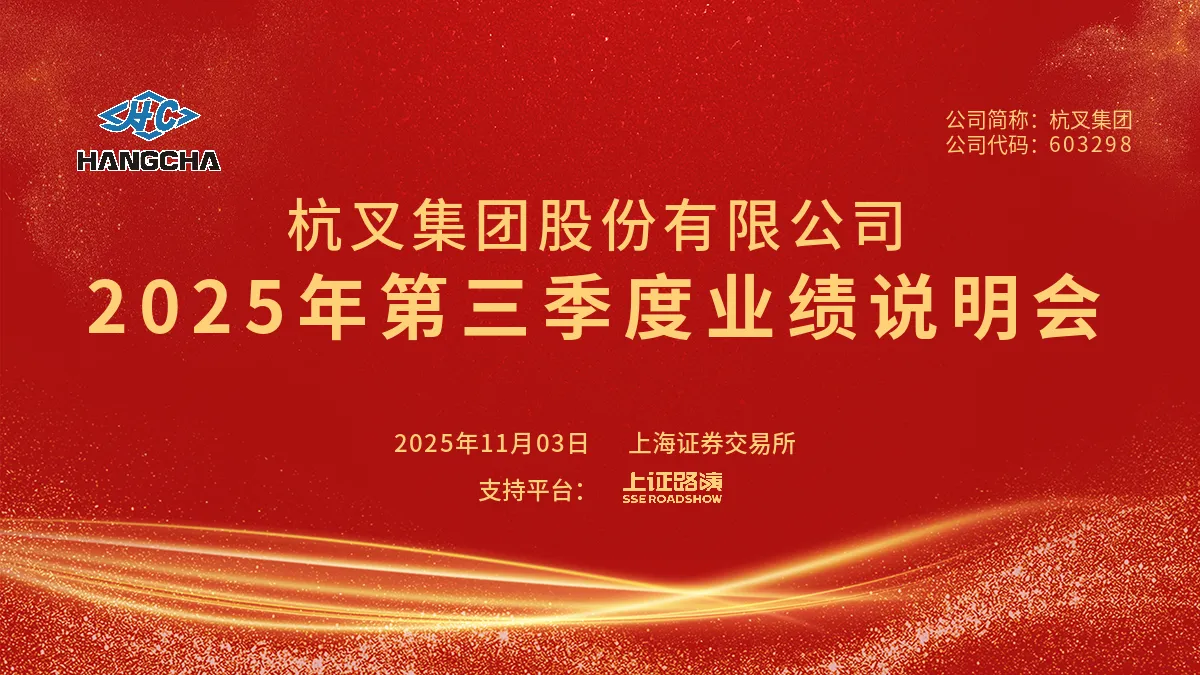 2025年11月3日,杭叉集团股份有限公司(股票代码603298)通过上证路演网“业绩说明会互动平台”成功举办线上“杭叉集团2025年第三季度业绩说明会”,与广大投资者就公司发展战略、业绩表现、未来规划等议题进行了坦诚充分的交流。出席本次业绩说明会的嘉宾包括公司董事长兼总经理赵礼敏先生、独立董事祝立宏女士、总经理助理兼董事会秘书陈赛民先生以及总会计师兼财务负责人章淑通先生等。