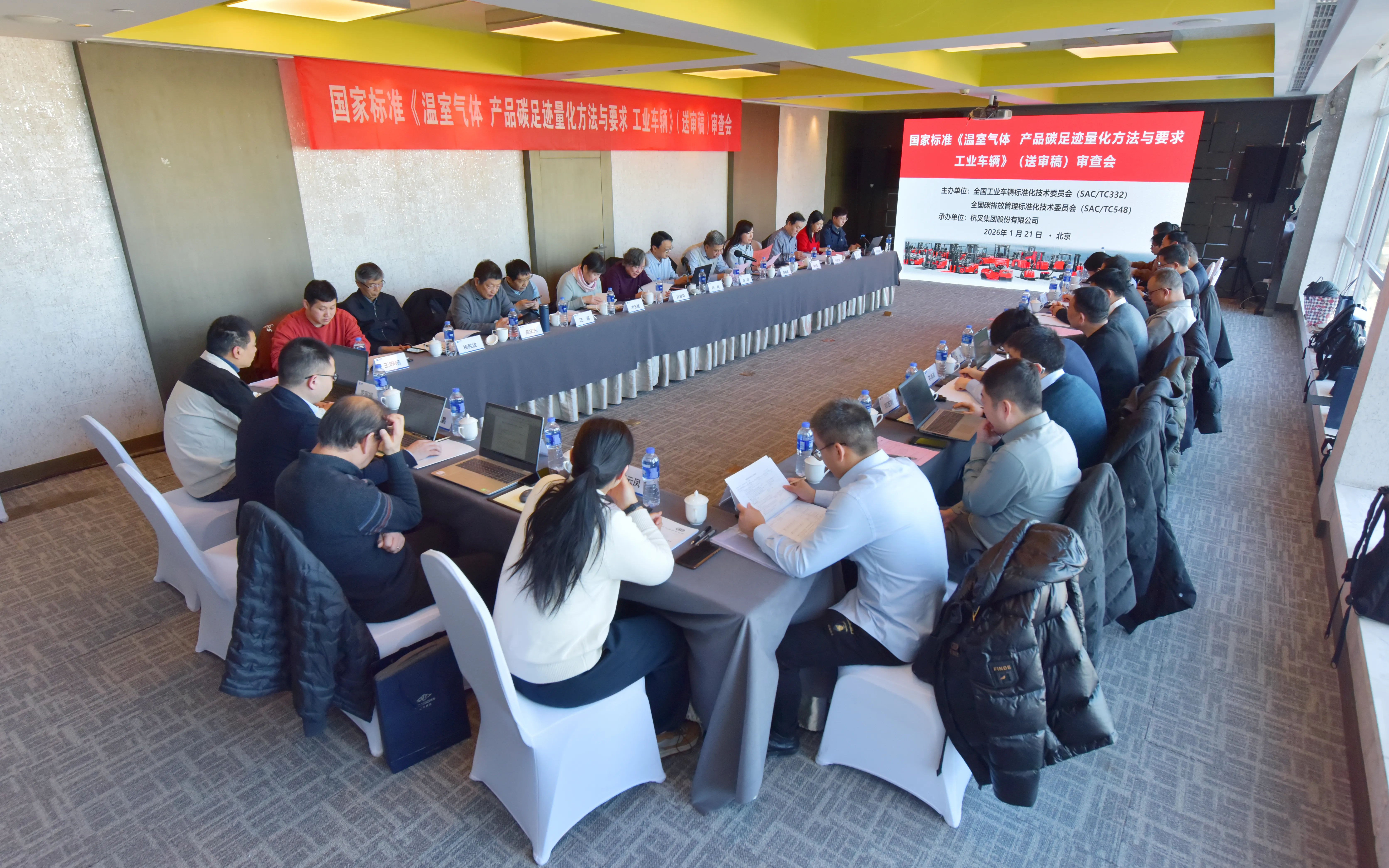 2026年1月20日至22日,全国工业车辆标准化技术委员会(以下简称“工业车辆标委会”)和全国碳排放管理标准化技术委员会(以下简称“碳排放管理标委会”)在北京市组织召开了国家标准《温室气体 产品碳足迹量化方法与要求 工业车辆》(送审稿)审查会。本次会议由杭叉集团股份有限公司承办,参加会议的有工业车辆标委会部分委员、碳排放管理标委会部分委员、行业专家等共28个单位29名代表。