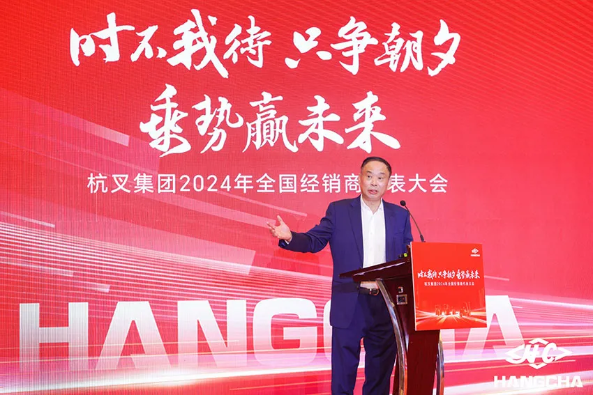 Zhao Limin, Party Secretary, Chairman, and General Manager of Hangcha Group, provided an in-depth analysis of the current domestic and international landscape. He reviewed Hangcha's commitment to its new energy strategy, international expansion, and achievements in technological innovation, market development, and smart factory construction in recent years. Hangcha is steadily advancing strategies for global growth and innovation.