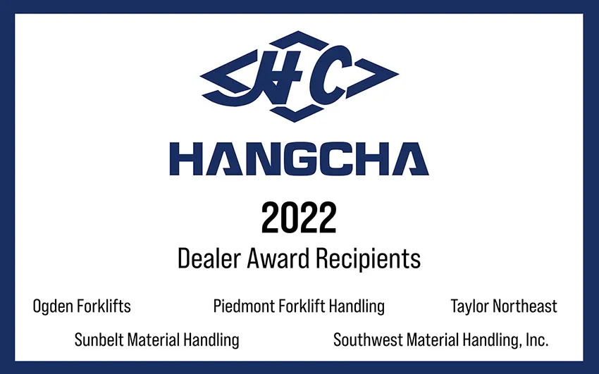 The second award is the Dealer of Excellence Award. This prestigious award is given out to the top 3 Hangcha dealers in the United States that provided excellent customer service and have sold the highest number of units for the 2022 calendar year.
