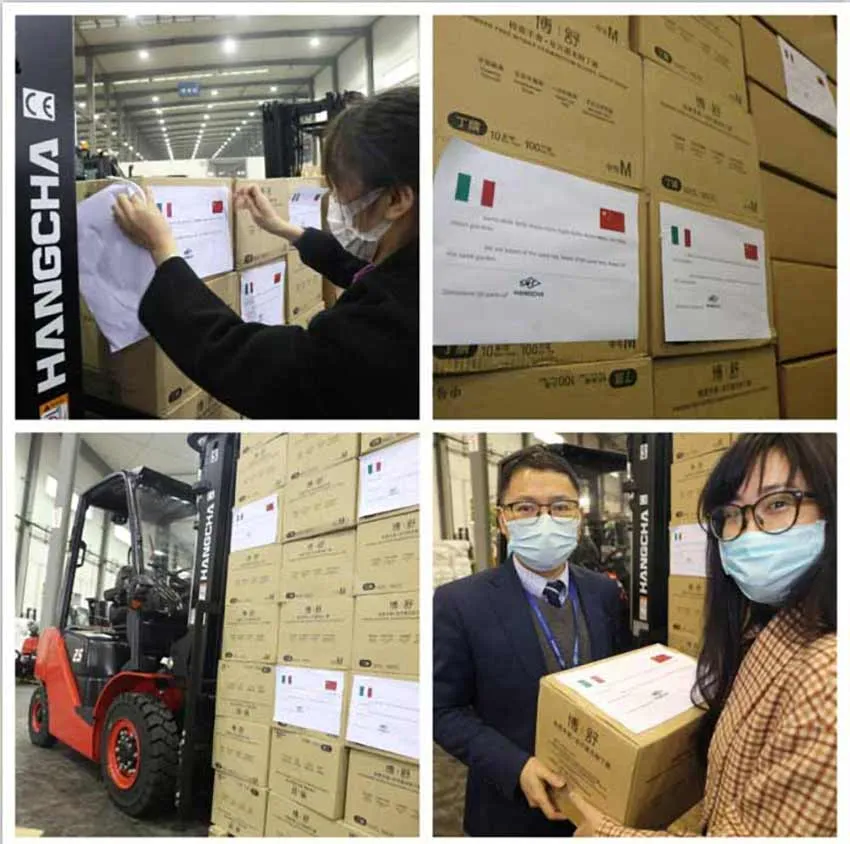 Meanwhile, with joint efforts, medical supplies that valued 1 million RMB were urgently raised by Hangcha, which included 100000 disposable surgical masks, 60000 disposable gloves, 2000 sets of medical protective clothing, 2000 face masks ect. They will be soon sent to more than 80 partners and medical institutions in more than 50 countries, such as Italy, Germany, France, Spain, Brazil, the United States, South Korea and so on. At the critical moment of fighting the contagion, Hangcha shoulders its responsibility as a leading enterprise from the meticulous care and help to our agents to the donation to overseas medical institutions.