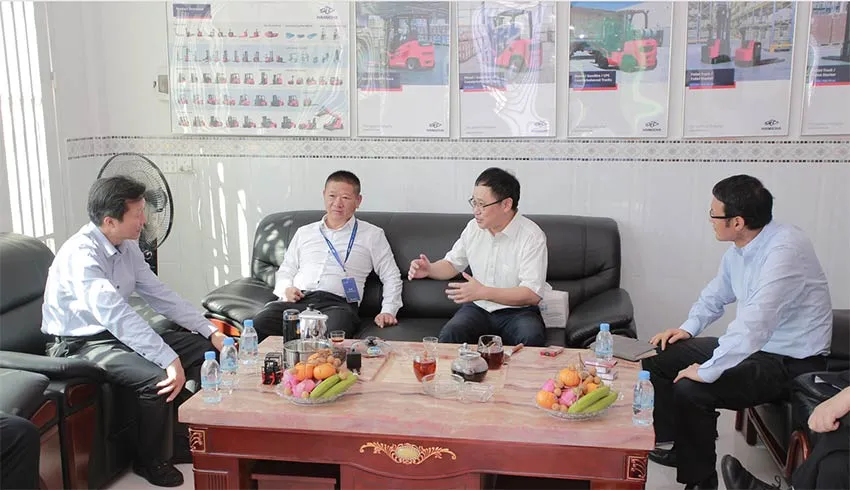 On November 16, 2019, under the leadership of Tian shihong, Deputy Director of the State Administration of Market Supervision, eight people visited the dealer of Hangcha in Cambodia. They learned about the development history of Hangcha, the status quo of the company and the development in Cambodia.