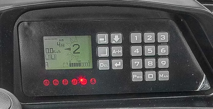 LCD screen can display the steering angle and direction synchronously, number key can set target lift height(Opt.).