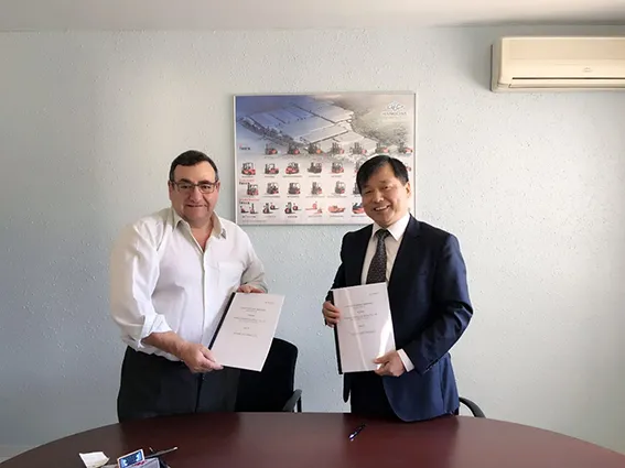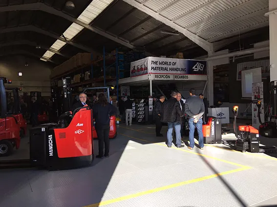 During the conference, Mr. Mariano (GM of HC-Fork Trucks, S.L.) and Mr. Jason Wu (GM of Zhejiang Hangcha Imp. &Exp. Co., Ltd.) both expressed the acknowledges to participants. There’re over 12 years cooperation between two parties, Mr. Wu specially expressed his acknowledges to Mr. Mariano’s promotion for Hangcha forklift truck sales, and hope the customer experience center may increase both parties’ business.