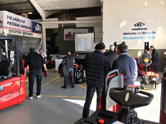 Hangcha Spain Dealer Conference and the opening ceremony of Hangcha Euro (Spain) customer experience center were held on 11th. Nov.. HC-Fork Trucks, S.L. as the exclusive dealer of Hangcha forklift trucks in Spain holds sub dealers conference annually, over 30 sub dealers joined this year conference. Spain is also the biggest warehouse equipment export market of Hangcha, to expand the brand image and provide value-added service to sub dealers and end users, Hangcha sets the first abroad customer experience center in Spain.