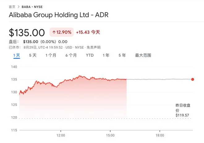 同样因为外卖补贴单季分部利润损失超百亿元,同样的单季总体净利润罕见双位数大幅度下滑,同样的增收不增利,外卖大战中最后一位披露季度业绩的阿里巴巴却收获了有别于前两家的股价大涨。昨日(8 月 29 日)美股收盘,阿里巴巴股价大涨 12.9%,创下今年 3 月以来*大单日涨幅,市值一举突破 3200 亿美元。