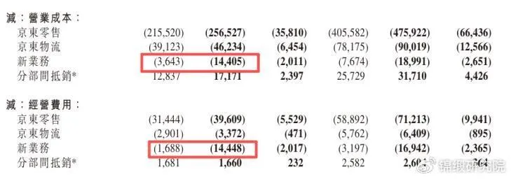 图:京东Q3新业务营业成本及经营费用,来源:企业财报